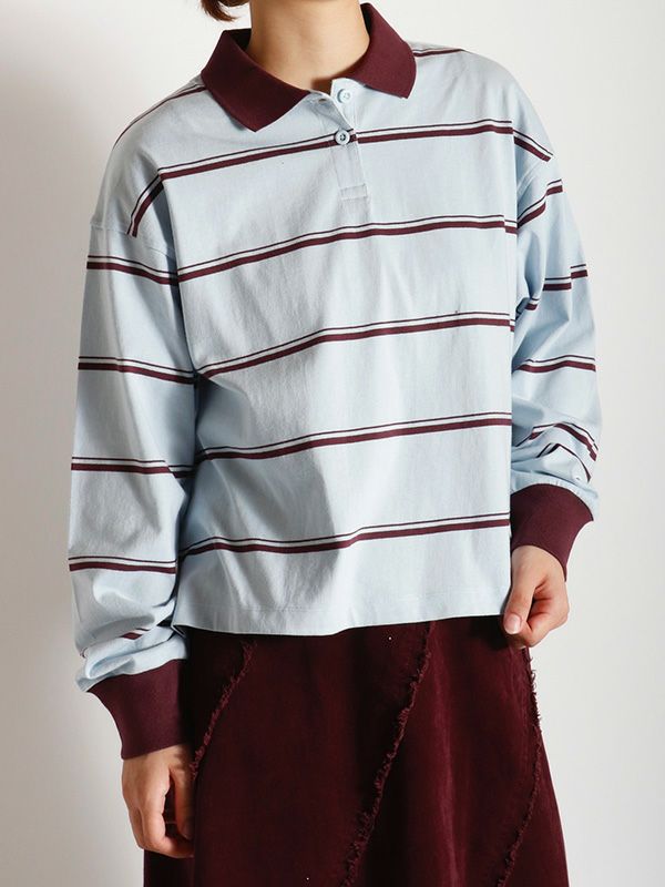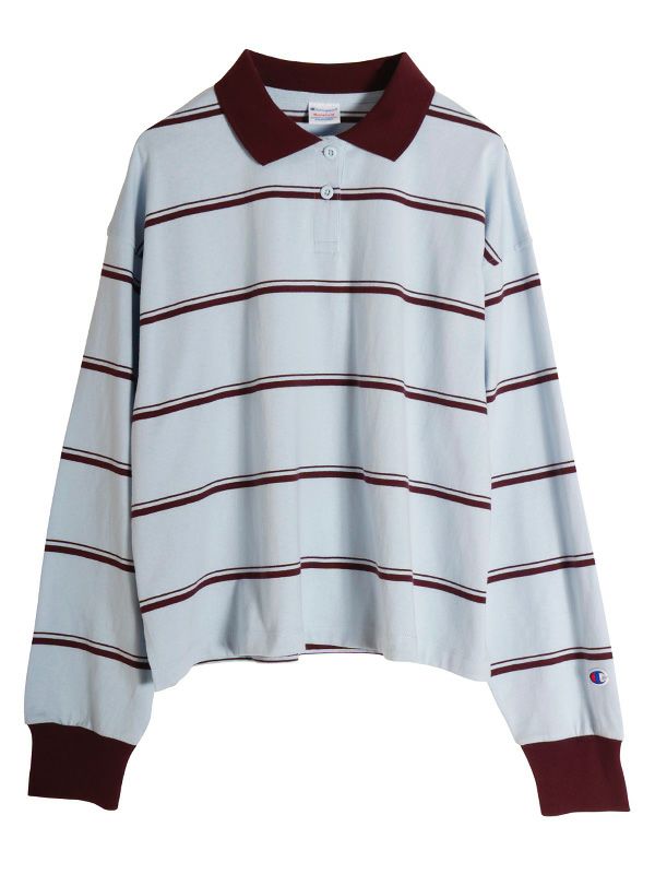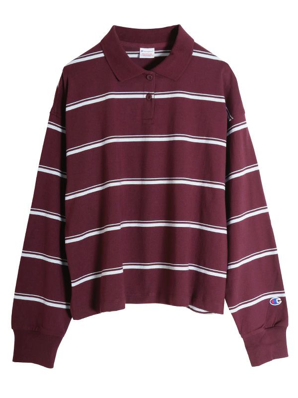 【CHAMPION】ボーダーロングスリーブポロシャツ