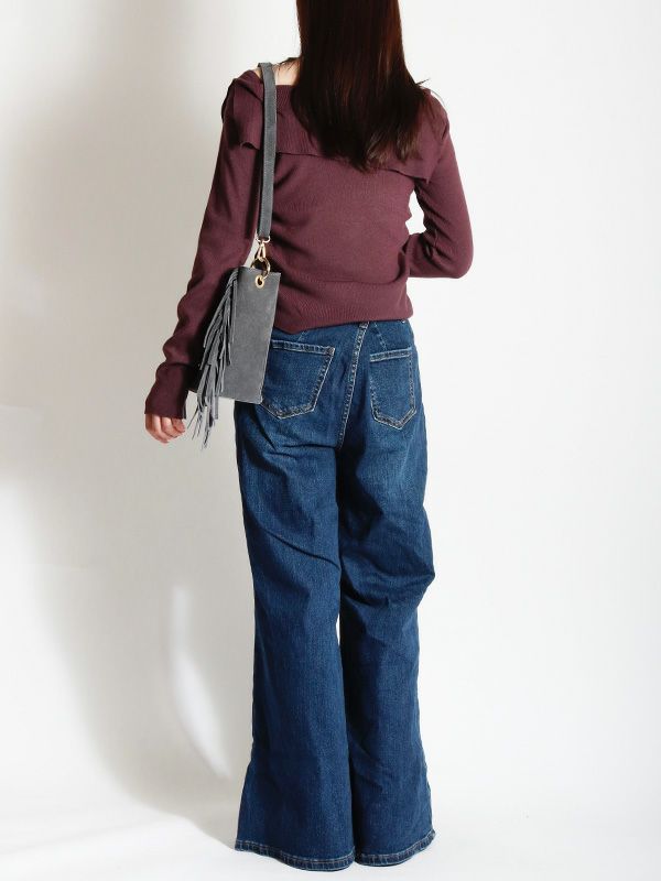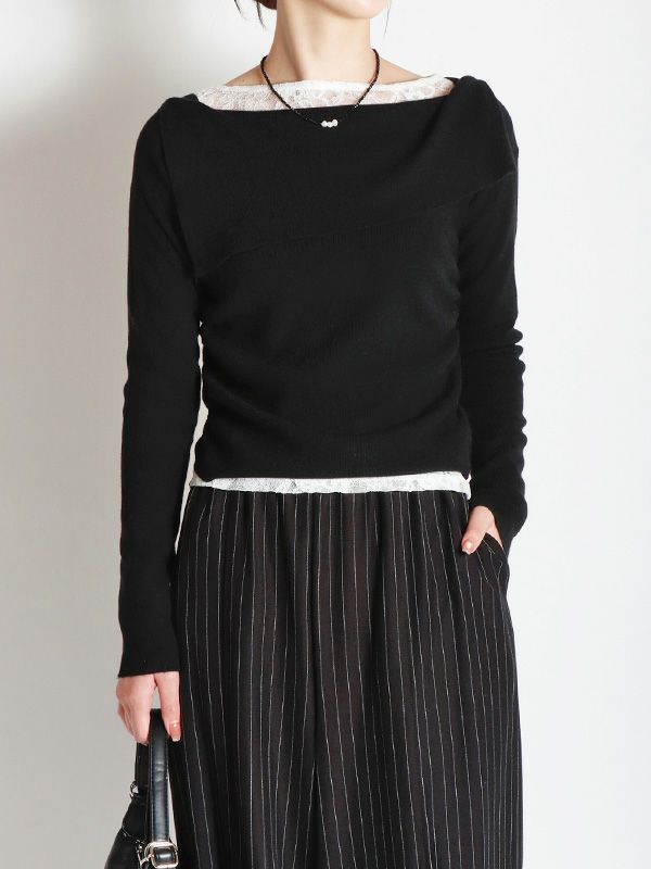 オフショルダーデザインプルオーバーニット