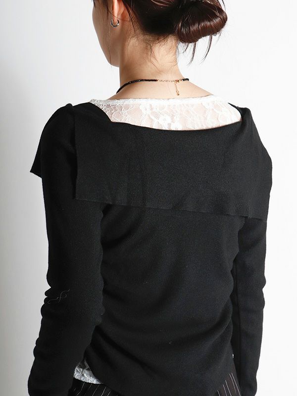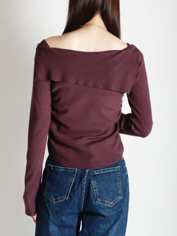 アシンメトリーネックデザインニット