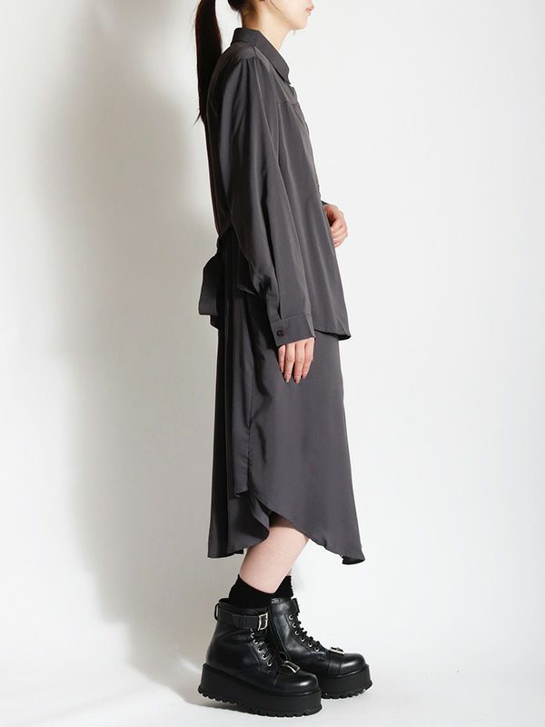 裾バルーンデザインシャツワンピース