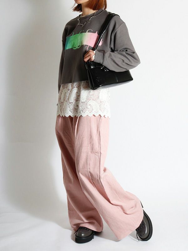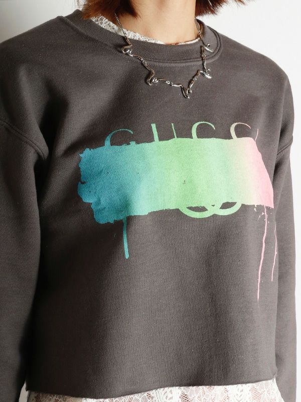 BLACK SCORE(ブラックスコア)から届いた新作のクロップドスウェット。グラフィックは人気の《GUCCI/CROSS》をプリント。ニュアンス感のあるグラデーションカラーが雰囲気のある仕上がりです。ボディはトレンド感のあるクロップド丈。着るだけでトレンド感を演出できますが、丈の短さが気になる方は、中にインナー、シャツなどをあわせるのがオススメ。大人カジュアルにも取り入れやすく、着心地も◎。インパクトがありながら女性らしさもあるので、ボトムはベーシックなアイテムで合わせるだけでサマになります。