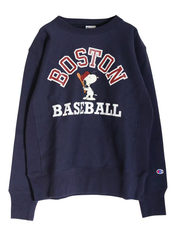 世界中の多くのファンに愛されてる、チャンピオンを代表する製法の「REVERSE WEAVE(R)」を用いたスウェット。洗うほどにタフになり、着こむほどに独特の風合いや味が出る裏起毛素材を使用したクルーネックスウェットシャツです。本来は縦方向に使われる生地を横方向に使用する「REVERSE WEAVE(R)」製法によって縦の生地の縮みを防ぐと同時に、両脇に「EXPANSION GUSSET」を付けることで横の縮みへの影響を少なくし、動きやすさに配慮しています。SNOOPY(スヌーピー)で知られるPEANUTS(ピーナッツ)のチャンピオンオリジナルアイテムで、胸にベースボールをモチーフにしたグラフィックを入れています。
