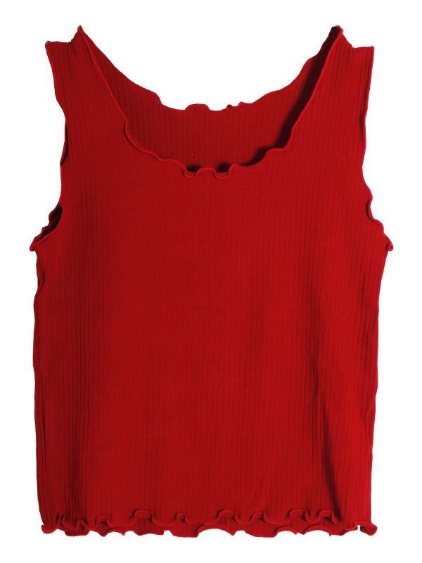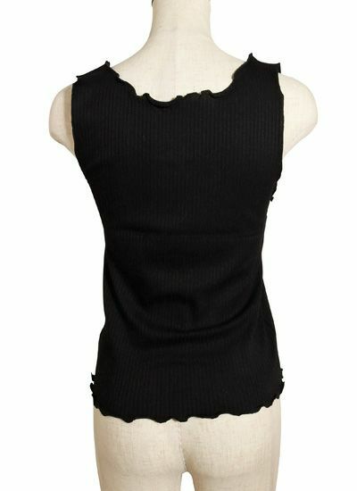 甘すぎないフリルデザインがポイントのデザインタンクトップ★ 程よい肌みせができる首元と太めのストラップも嬉いポイントです◎ シンプルながらもデザイン性があるので夏場に1枚でも♪