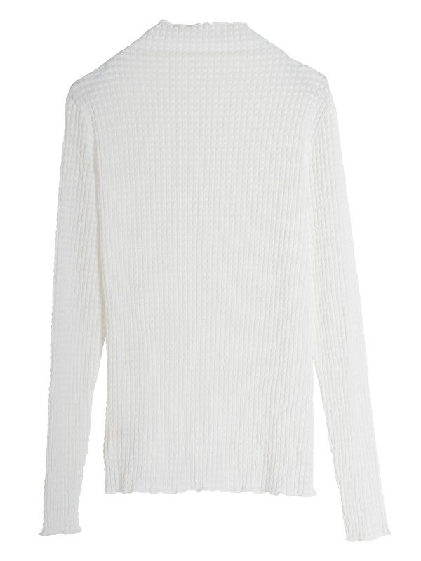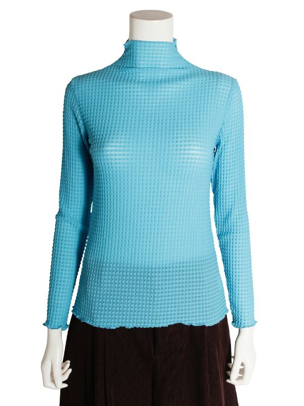 1枚着はもちろん、スウェットやニットの首元や袖口からチラッと覗かせるのがお勧めのシアートップス。今季はピッタリとしたスキントップスも注目されているので、中にインナーを着てトップスとしての着用も◎ 透け感が気になりすぎないよう凹凸感のある格子模様織のチュールを使用したレイヤードにも万能なシアートップスです。