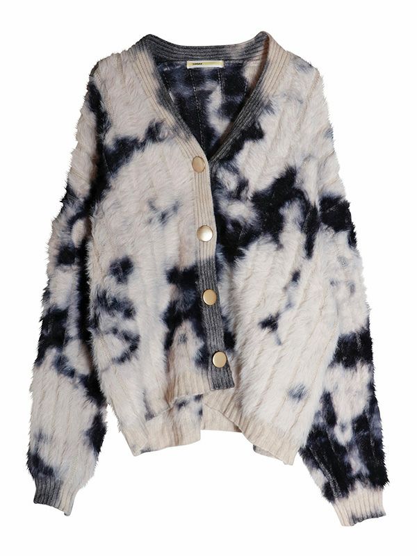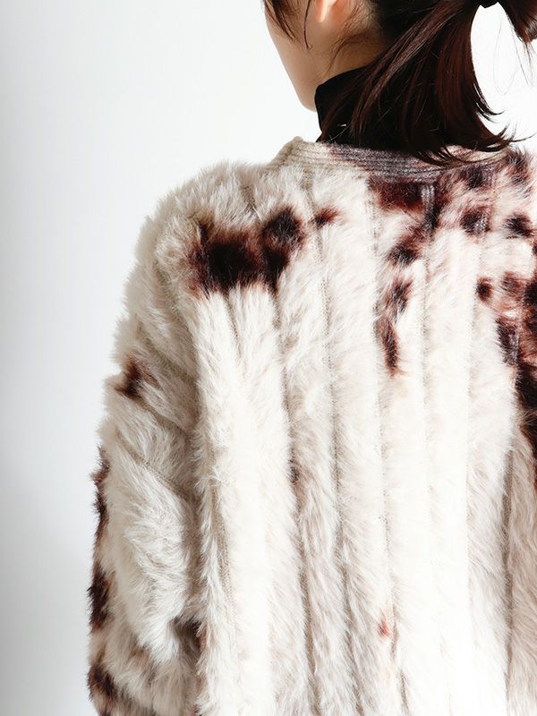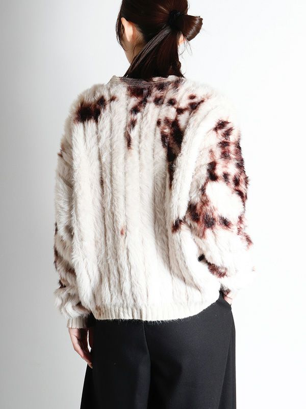 スタイリングを華やかにしてくれる、シャギーニットカーディガン。 アートのように広がるカラーが柔らかい存在感を演出。 シンプルなスタイリングに羽織るだけで、ぐっとこなれた印象に仕上がります。 リラックス感がありながらも女性らしい抜け感をプラス。 フロントには大き目のボタンを配置し、羽織としてはもちろん、閉じてトップス風に着てもバランスよく着ていただけます。 カジュアルなデニム合わせから、ロングスカートやワンピースとのフェミニンなスタイリングも◎ 雰囲気の違う色味で、色違いで欲しくなるアイテムです!