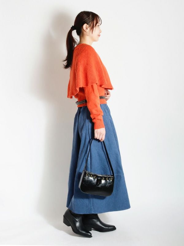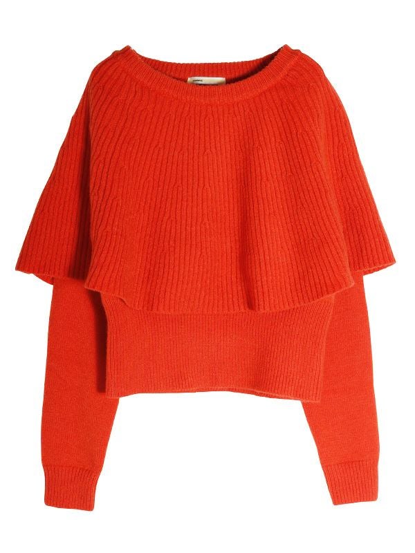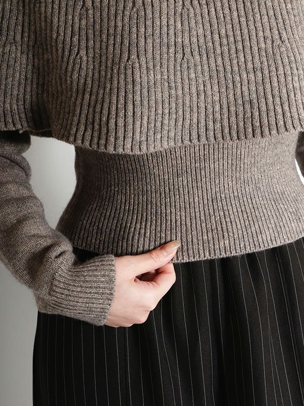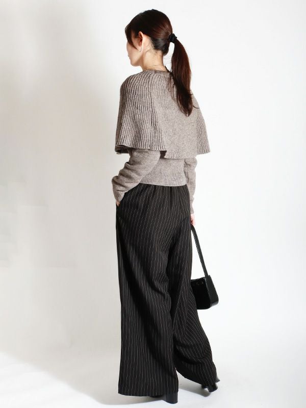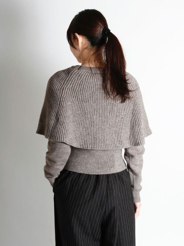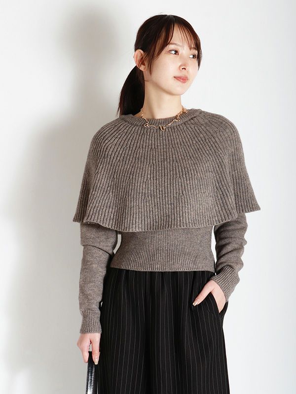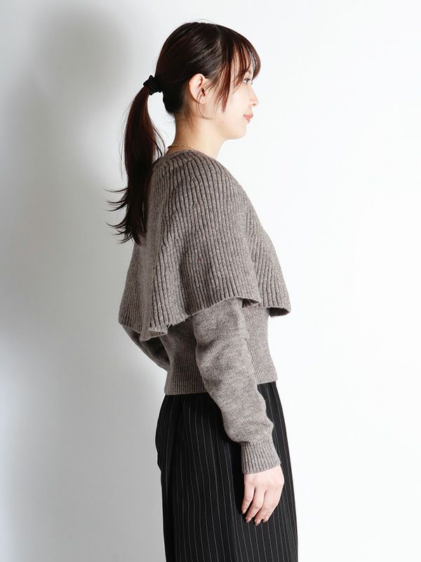 一見シンプルなニットトップスでありながら、ケープを重ねたようなレイヤードのディテールが、他にはない遊び心とフェミニンな魅力を放つ1着です。ボディは程よくゆとりのあるシルエットにしつつ、袖口と裾には幅広のリブを配することで、全体を引き締めメリハリのあるバランスに仕上げました。ケープの華やかさが際立つデザインで、シンプルなボトムスと合わせるだけで、即座にスタイリングが完成。デニムと合わせてカジュアルダウンしたり、プリーツスカートやタイトスカートなどきれいめスカートと合わせれば、フェミニンなスタイルも楽しめます。個性的でありながらも着回し力の高い、大人のためのモードなアイテムです。