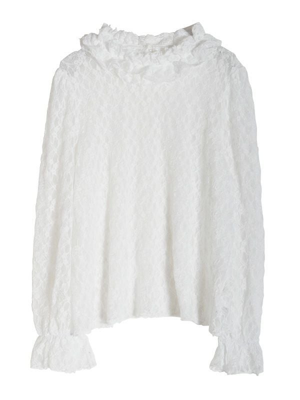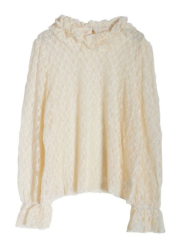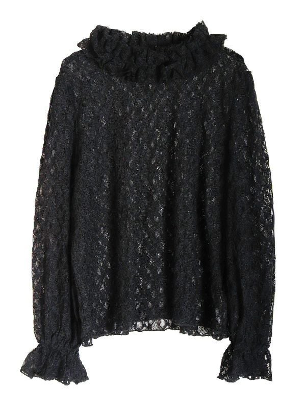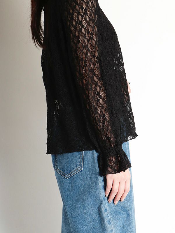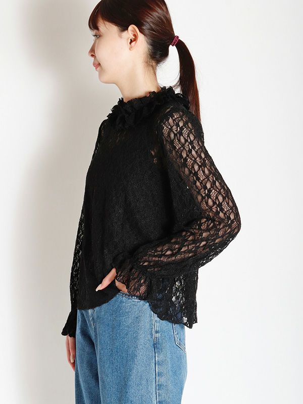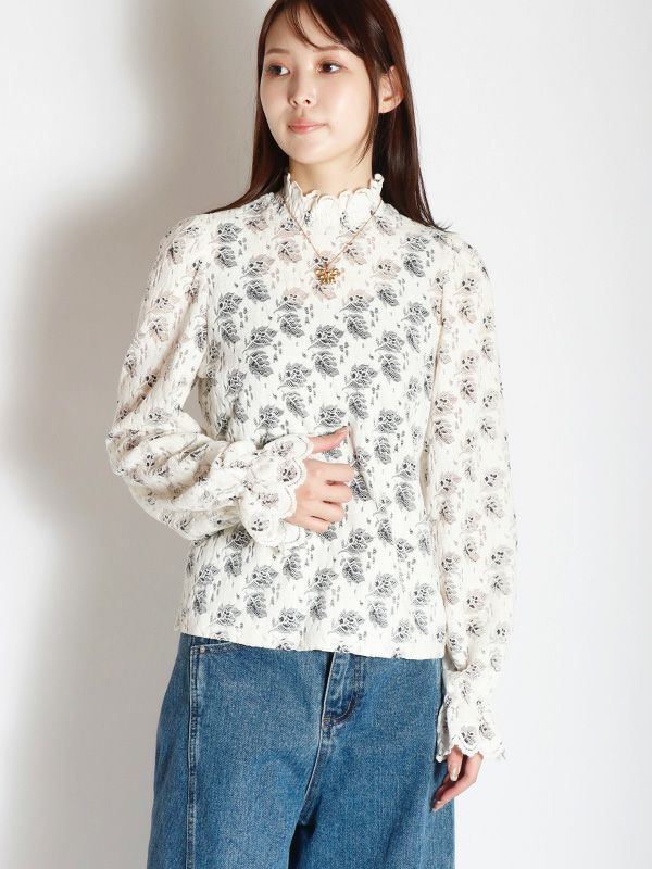 花柄レースハイネックトップス