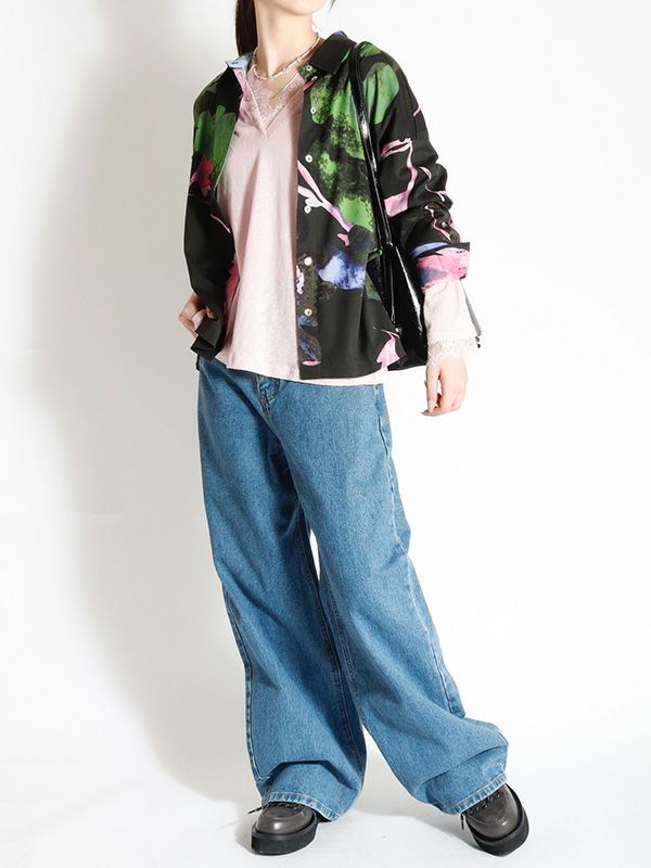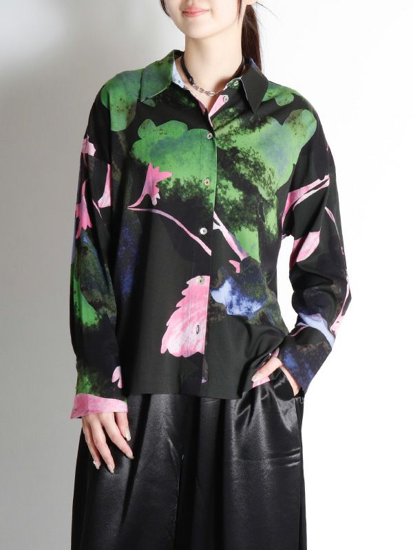 ボタニカルフロッキープリントシャツ
