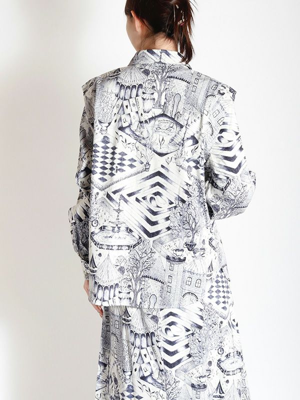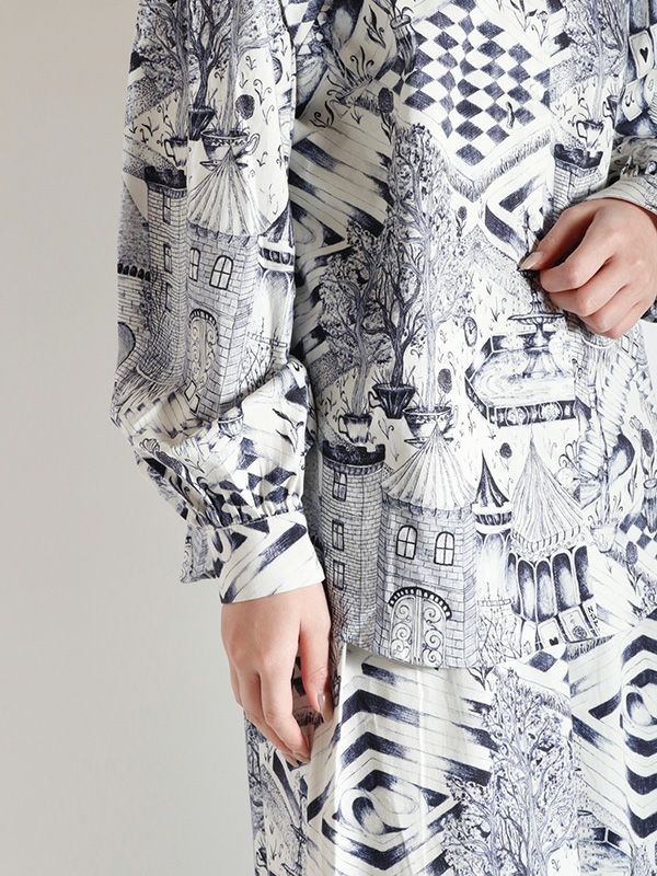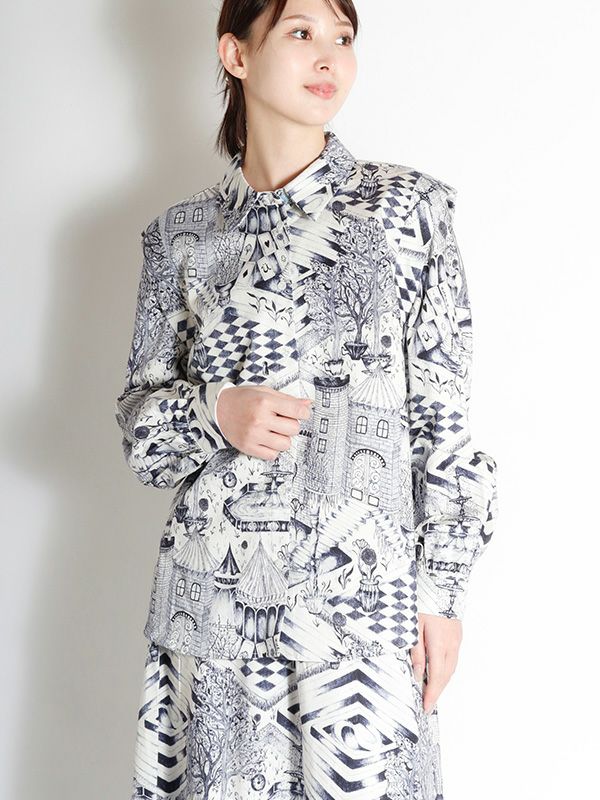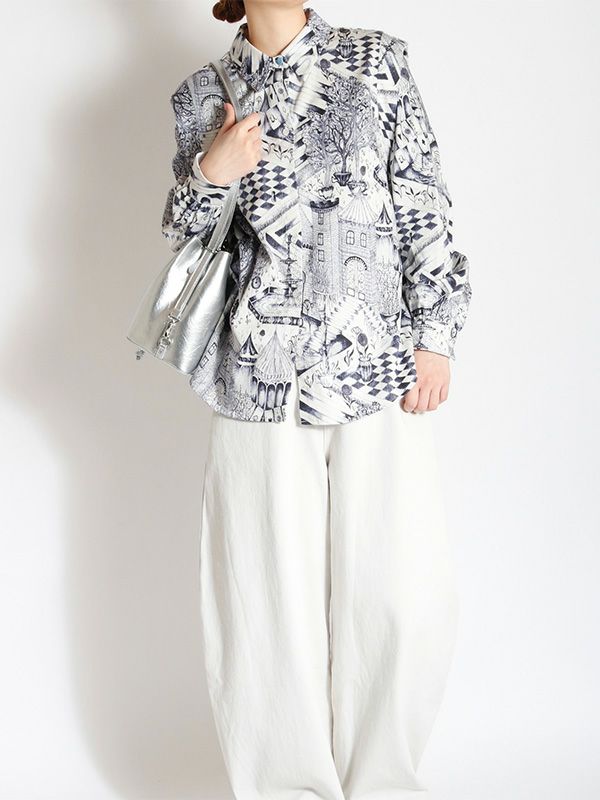 NUMPHから届いたおとぎ話の世界から出てきたようなプリントが印象的なオリジナルプリントシャツ。立体的な肩のレイヤードデザインが肩や二の腕のラインを拾わないため、気になる部分をさりげなくカバーしてくれます。存在感とデザイン性を兼備した1枚で、甘すぎない華やかコーデが完成します。デニムと合わせるだけでサマに。タイトなシルエットのスカートで、すっきりとレディにまとめるのもおすすめです。同シリーズのスカートとコーディネートするのもおすすめです。