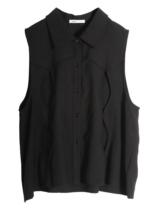 デザイン性の高いノースリーブシャツ。身頃の大胆なカットデザインとウエスタンヨークが他にはない個性のあるスタイルを演出します。ゆったりとした身幅なのでサラッと単品使いで着用していただくのはもちろん、前開きでベストとしても活用でき長袖のカットソーやTシャツとのレイヤードスタイルもおすすめです。様々なコーディネートにマッチし、春先から秋口まで、ロングシーズン着回しを楽しめます。