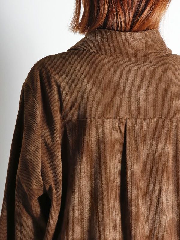 コーデュロイに施したニュアンス感のある染めを施した生地が特徴のレギュラーカラーのオーバーサイズシャツ。リラックスフィットの余裕を感じさせるシルエットが、気負いのない軽やかな着こなしを演出します。カジュアルでありながらもヴィンテージな存在感を併せ持つ、大人のための1枚です。スタイリングはスラックスやワイドパンツと、大人なハンサムスタイルをお楽しみいただくのがおすすめ。