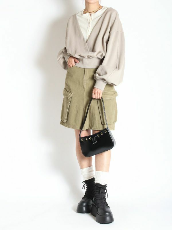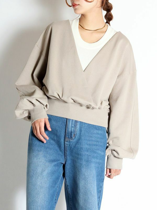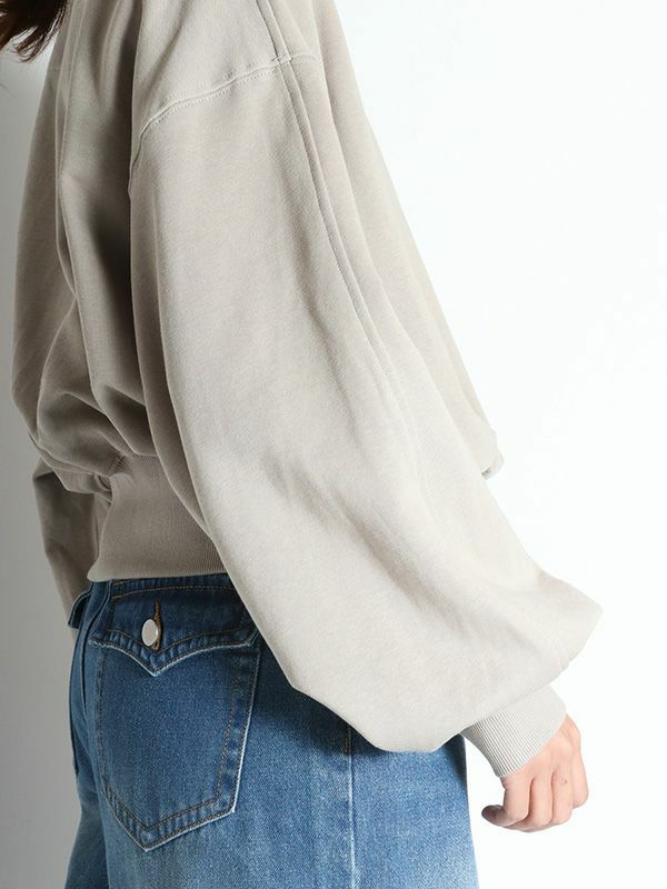 裏毛素材のカシュクールデザインスウェット。カジュアルに傾きがちなスウェットですが女性らしい印象で着ていただけます。ボリュームスリーブが、さらにトレンド感のあるデザイン性をプラス。しなやかな風合いのテキスタイル。くたっと柔らかな風合いが着心地の良さをもたらします。パンツとのコーディネートはもちろん、きれいめなスカートと合わせた女性らしいスタイリングもおすすめです。