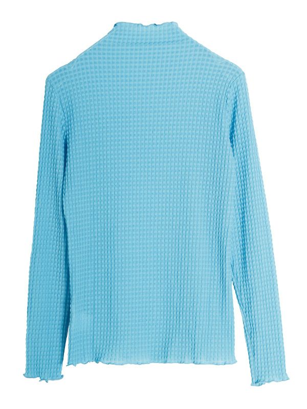 1枚着はもちろん、スウェットやニットの首元や袖口からチラッと覗かせるのがお勧めのシアートップス。今季はピッタリとしたスキントップスも注目されているので、中にインナーを着てトップスとしての着用も◎ 透け感が気になりすぎないよう凹凸感のある格子模様織のチュールを使用したレイヤードにも万能なシアートップスです。