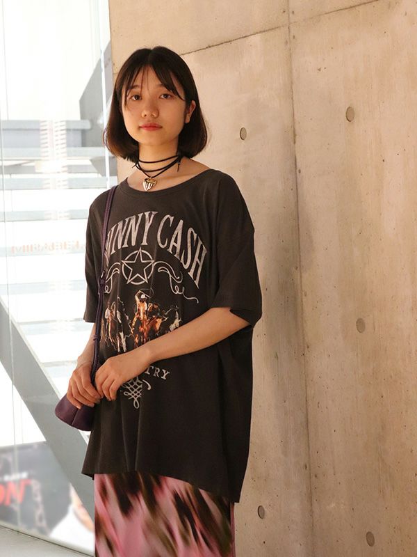 JOHNNY CASH/ジョニー・キャッシュのもつオールドカントリーの雰囲気はそのままに、ヴィンテージ感ある風合いに仕上げたTシャツ。オーバーサイズ好きにはたまらないビッグシルエット、1枚でコーディネートに「こなれ感」をもたらしてくれます。DAYDREAMERならではの染色加工、ユーズド感のあるブラックカラー、程よく軽い素材でドレープが出る質感と、ルーズな抜け感が出るように柔らかな肌触りで独特の風合いに仕上げたTシャツです。
