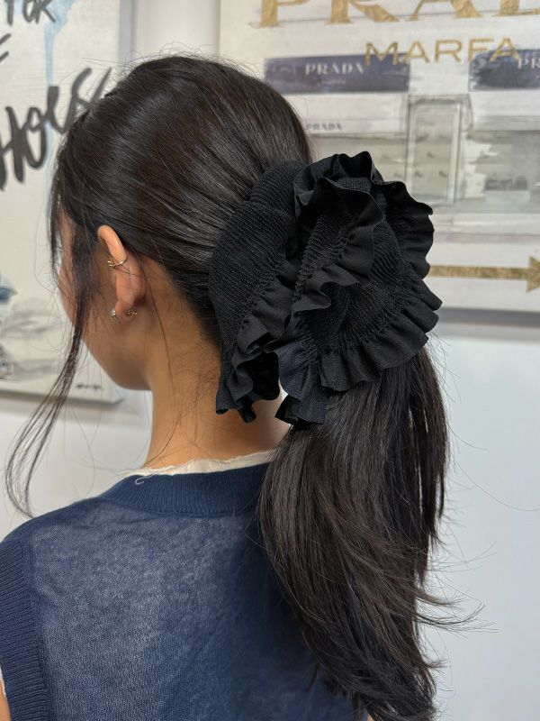 ヘアスタイルにインパクトを添えるシュシュ。柔らかな素材感とボリューム感が顔周りを華やかに仕上げます。ギフトにも喜ばれるひと品。ヘアアレンジに使用するのはもちろん、手首や鞄に付けるなど、アクセサリー感覚での使用もおすすめ。