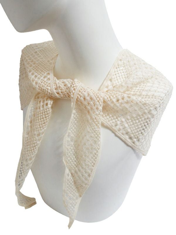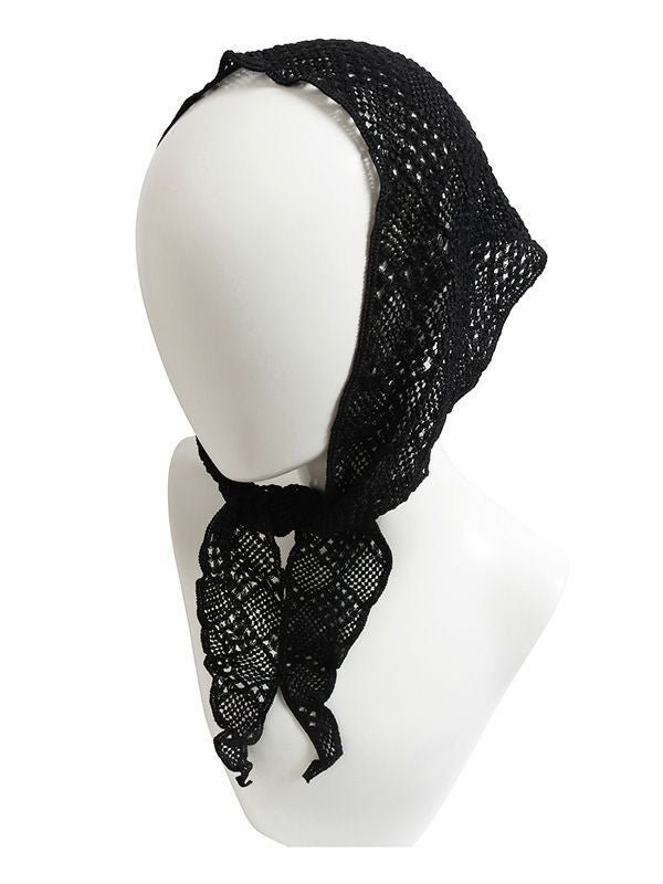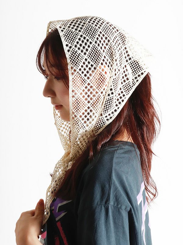繊細な印象のレーススカーフ。様々なアレンジができる使いやすいトライアングルデザイン。首に巻いたり頭に付けるのはもちろん、キャップを被った上に合わせたり、腰に巻いたトレンドスタイルもおすすめです。