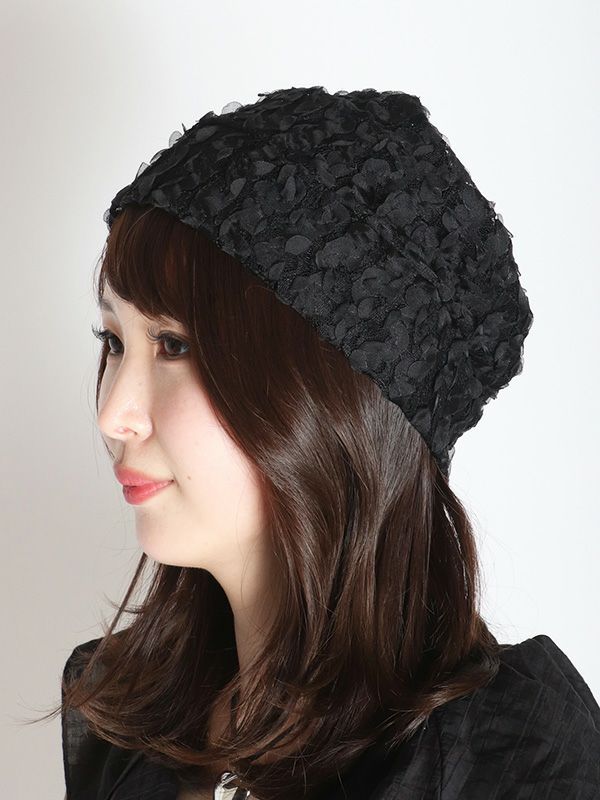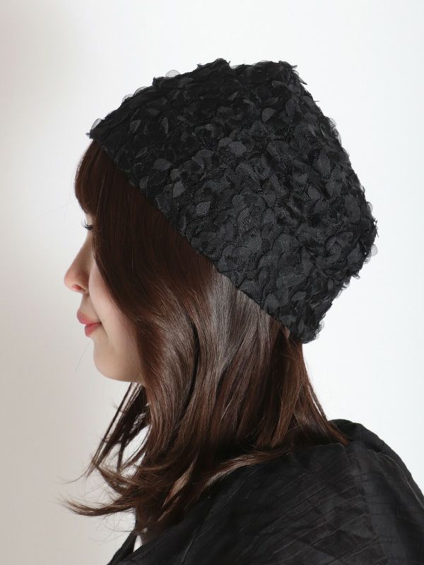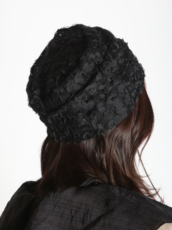 立体感のある3Dフラワーレースデザインが可愛いレースビーニー。シンプルなビーニーに程よい甘さをプラスしたデザインで、カジュアルからフェミニンまで幅広いスタイルにマッチします。カットソーにデニムパンツを合わせたシンプルスタイルや、ワンピースにプラスワンするのがおすすめ。