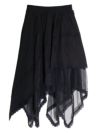 イレギュラーに施されたアシンメトリーなヘムラインがフレッシュな表情をみせるデザインスカート。 動くたびに新しい表情と立体感が生み出され、新鮮な印象に導きます。 ヘムラインにレースを施しフェミニンな印象は保ちながら、アシンメトリーなシルエットにすることで躍動感をプラス。シルエットをキープしてくれる程良いハリ感とインナーチュールの落ち感の異素材を組み合わせたテキスタイルが魅力です。スカートとしてはもちろんパンツとのレイヤードスタイルが特におススメのスカートです。