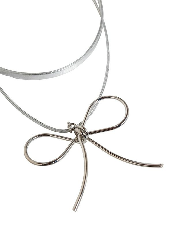 リボンモチーフが目を惹くネックレス。レザー調の紐を使用することで、チェーンとは異なる甘辛ミックスな印象を与え、チョーカー感覚で楽しめます。シンプルな装いにプラスするだけで、こなれた雰囲気に。お持ちのネックレスとの重ね付けで、より個性的なスタイリングも楽しめます。