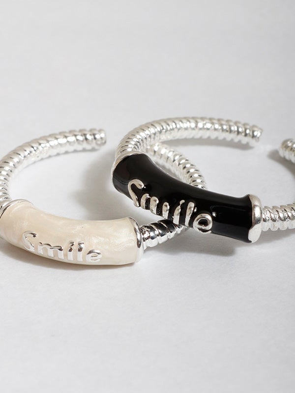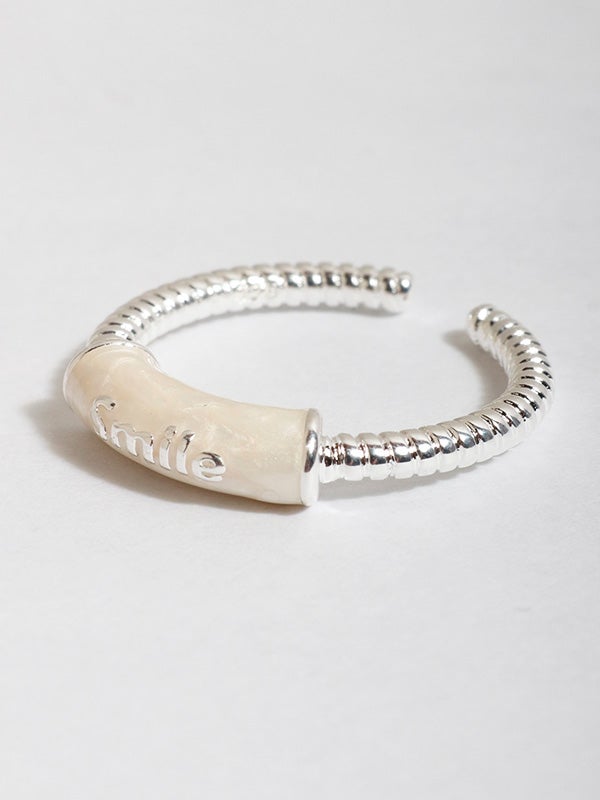 中心に「Smile」を施したキャッチーかつメッセージの詰まったデザイン。手元のさりげないアクセントになり、1点投入するだけでコーディネートに遊び心のあるエッセンスを加えてくれます。