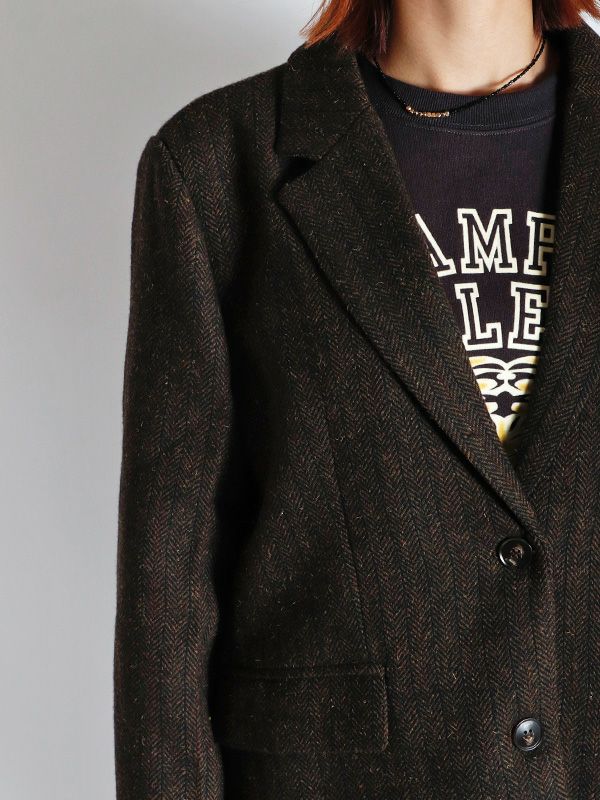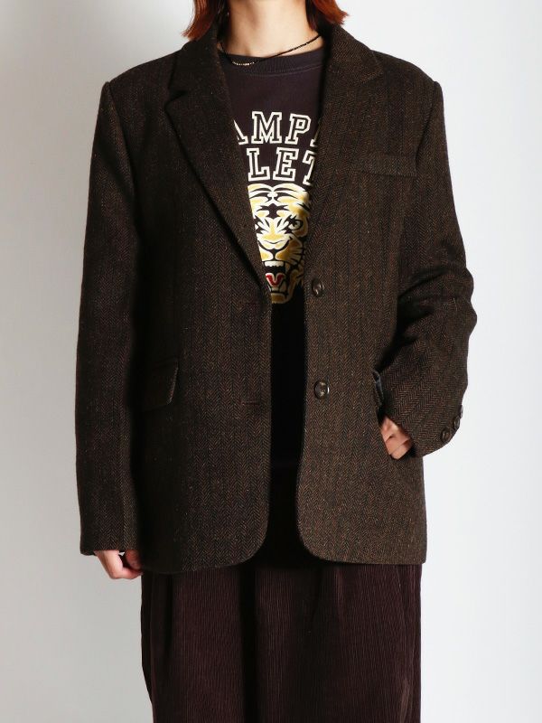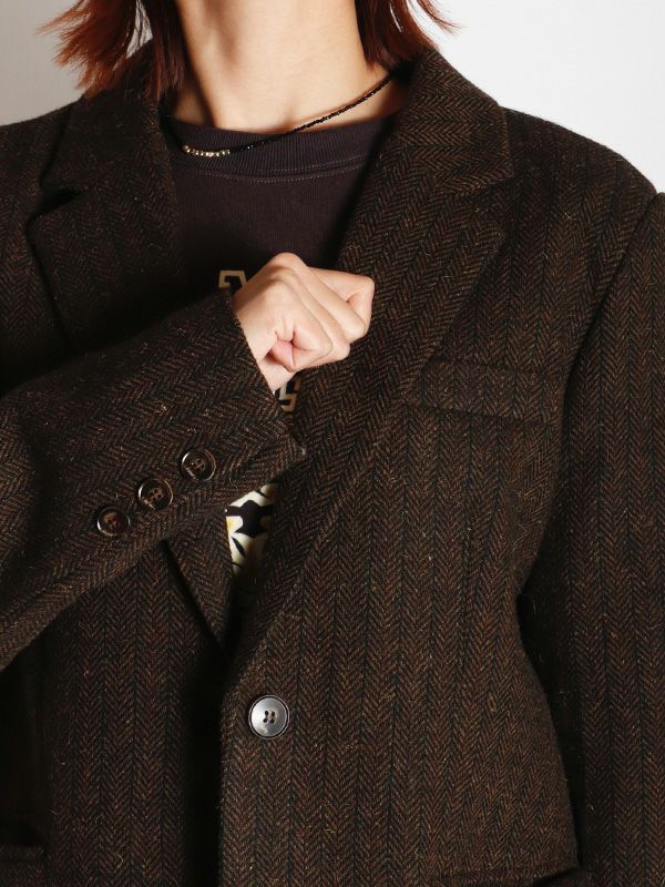 ヴィンテージのメンズジャケットをイメージしたツイードジャケット。シングルボタンのベーシックなデザインなので着回しやすく、長く愛用できる1着です。大きすぎず小さすぎない、程よくゆとりのあるサイズ感でバランスがとりやすいシルエットです。大人の抜け感のあるスタイルに仕上がるデザインは、カジュアルなデニムからきれいめなスラックスまで、幅広いボトムスと相性が良く、オフィスから普段使いまで様々なシーンで活躍します。