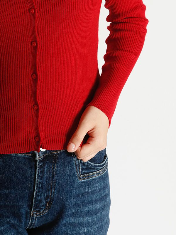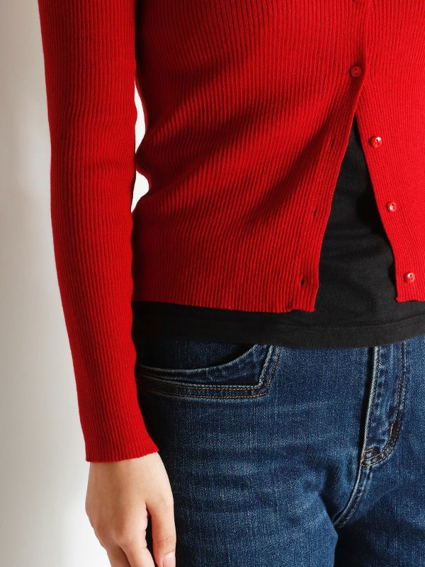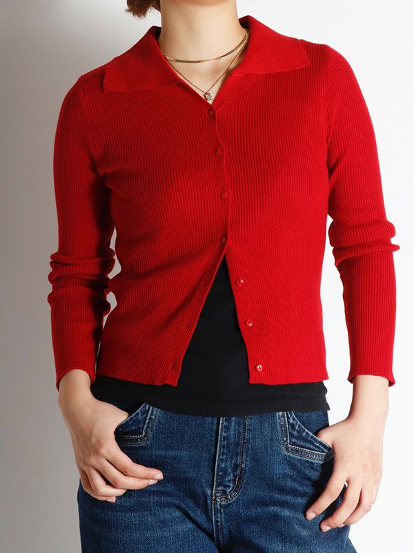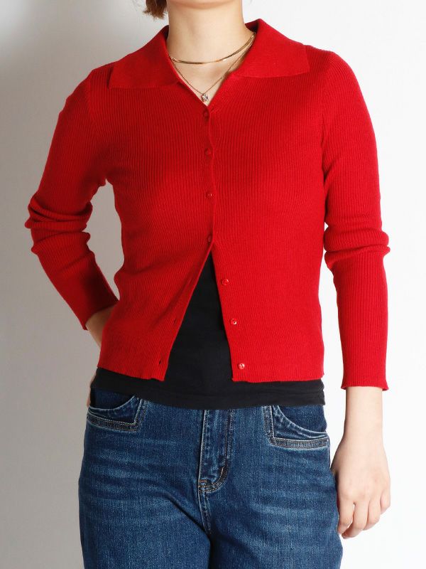 トレンドのポロ襟デザインを取り入れた、大人の女性にぴったりなリブカーディガン。 伸縮性のあるリブ編みが身体に心地よくフィットし、女性らしいコンパクトなシルエットを演出します。 トップスとしても、羽織りとしても使える、着回し力抜群の万能アイテムです。スラックスやデニムなどのカジュアルなワイドパンツと合わせれば、こなれ感のある大人カジュアルスタイルが完成します。ジャケットやジレのインナーとして、コーディネートのアクセントにするのもおすすめ◎。