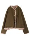 ミンクのような毛並みと、ボリュームのある柔らかな肌触りが魅力のフェイクファーとアクティブな印象のシャリ感のあるノーカラーブルゾンの2つのまったく異なる表情が楽しめるリバーシブルブルゾン。ノーカラーのスッキリとしたネックラインが着用時に抜け感のある動きを生みます。身幅と袖にたっぷりとゆとりを持たせたシルエットにややコンパクトな着丈。裾のストリングでシルエットの調整をしていただけます。