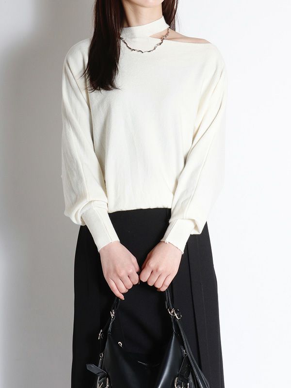 アシンメトリーネックデザインニット