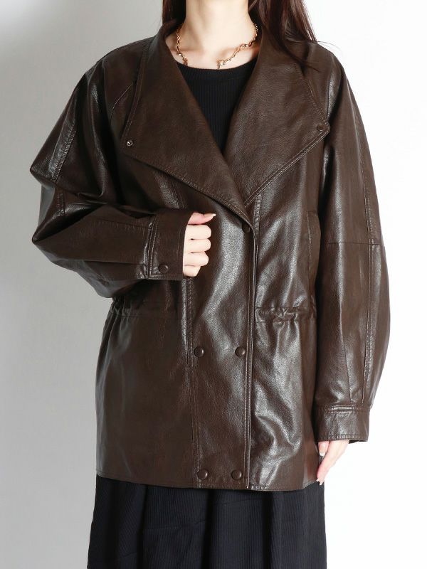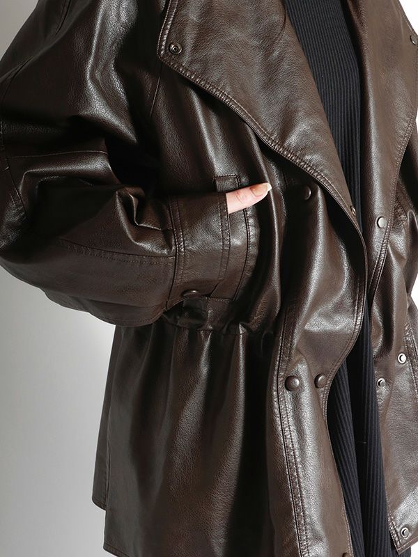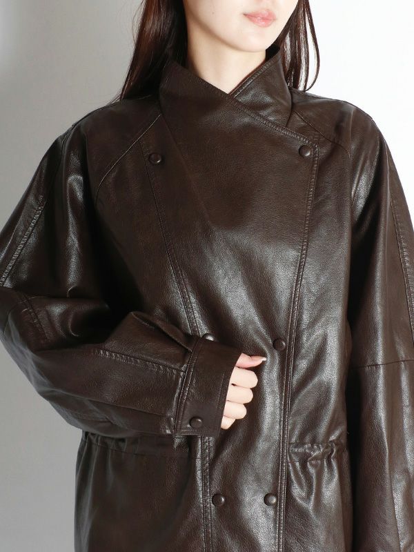 フェイクレザーダブルボタンコート
