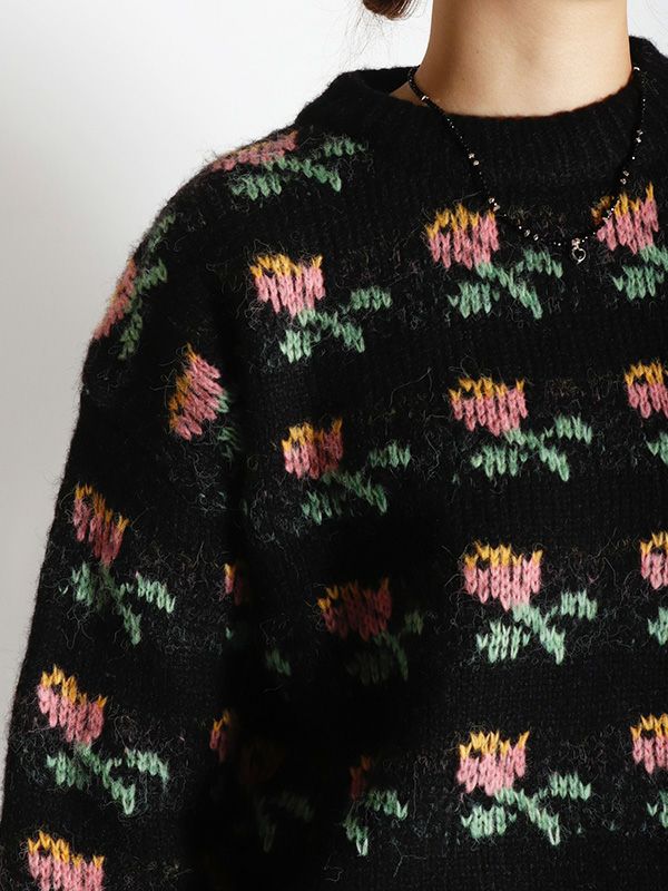 ローズ柄ニット