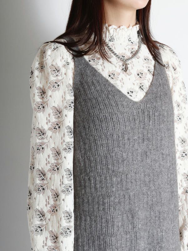 フラワーレースハイネックプルオーバー