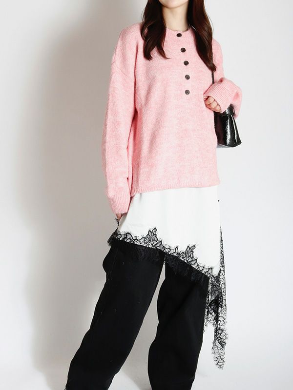 ハーフボタンデザインニット