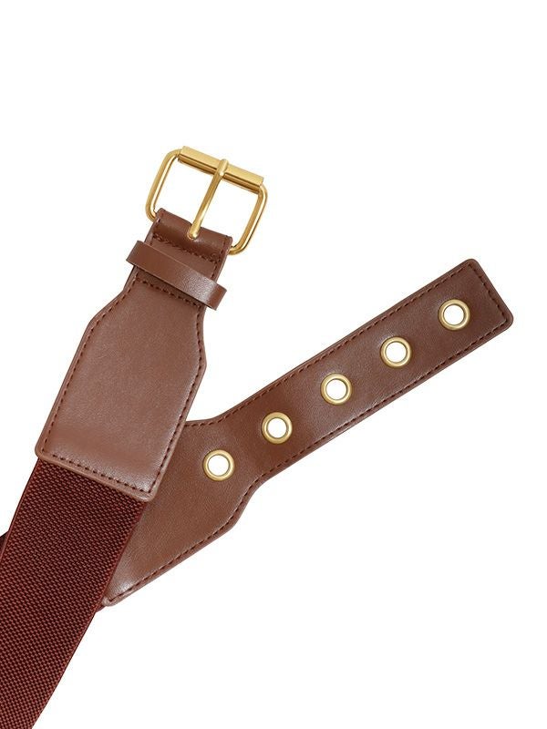 フロントに施された太めのバックルが目を惹くゴムベルト。普段にプラスワンするだけで、こなれ感のあるスタイリングをお楽しみいただけます。ゆったりとしたトップスやワンピースなどのウエストマークとしてもおすすめです。