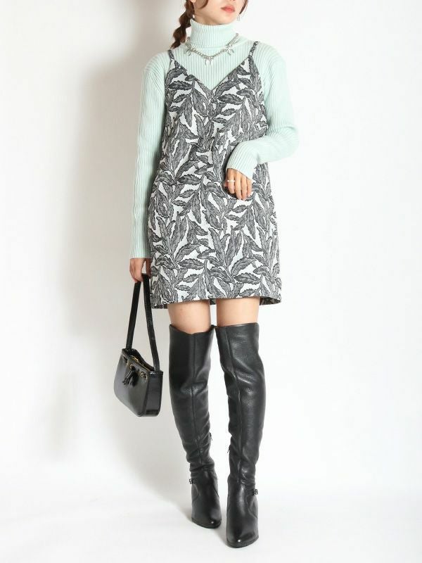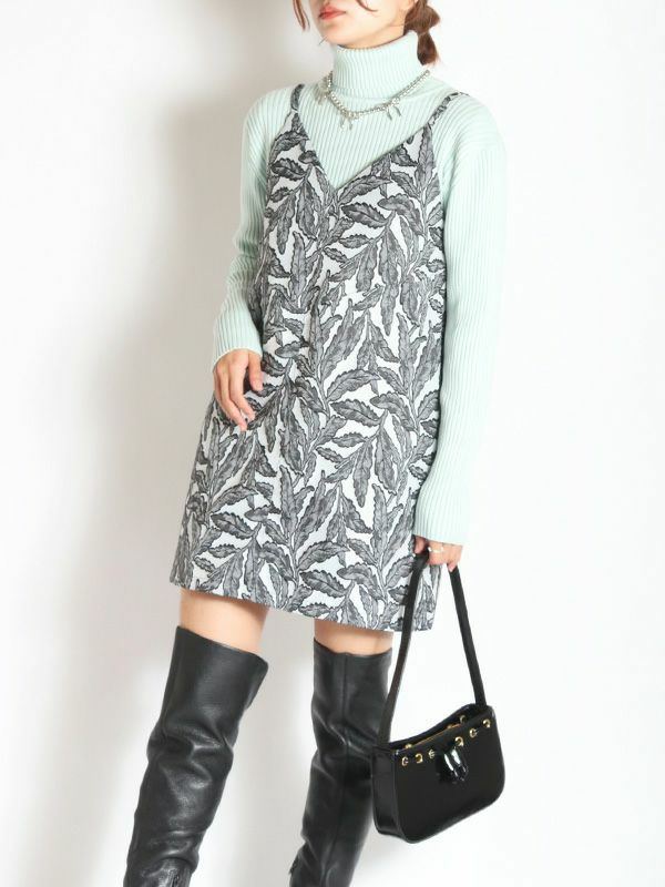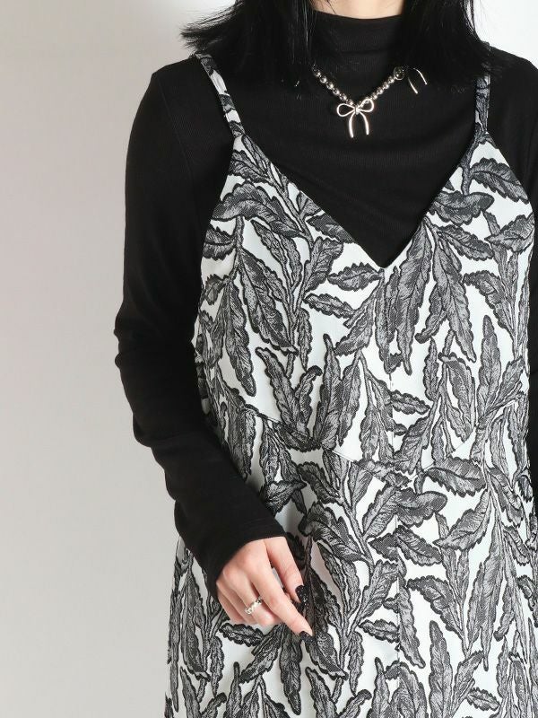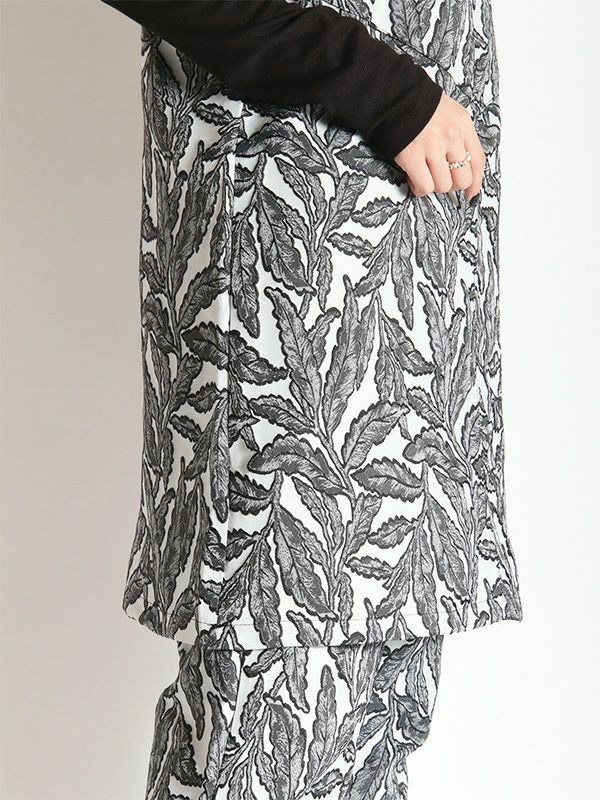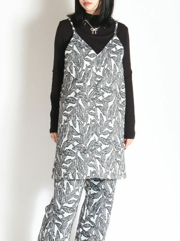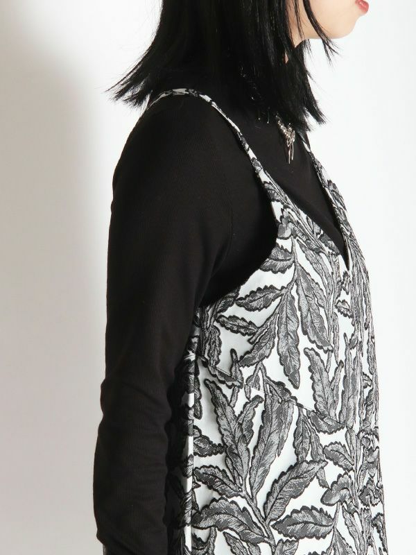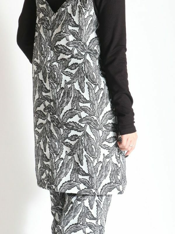 フラワーモチーフのジャカード織素材が特別感のある仕上がりになっているロングトップ。キャミタイプでワンピースとしてはもちろん、レイヤードにも大活躍なビスチェデザインです。オールシーズン着ていただけるポリエステル糸仕様の生地なので1年を通してブラウスやTシャツやタートルなどに合わせたり、様々なコーディネートを楽しめます。表情豊かなジャガード織りが印象的でマルチウェイに活用するロングトップです。同素材のパンツと合わせたセットでの着こなしもおススメです。