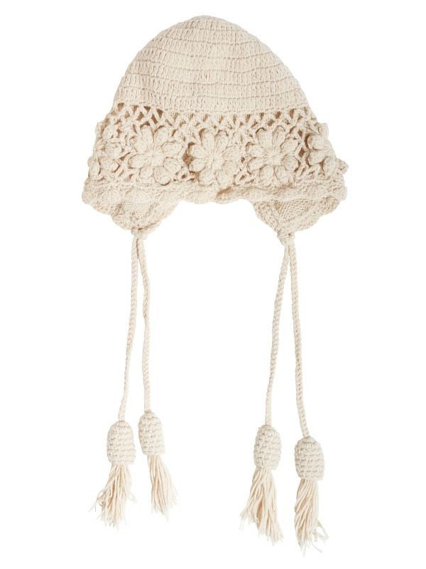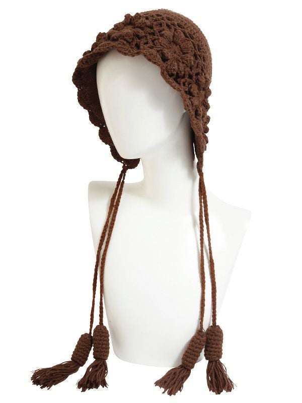 人気の紐付きのニットキャップ。編み柄が可愛らしい印象でいつものコーデに取り入れるだけでトレンド感がグッと増します。どこか漂うノスタルジックな雰囲気のデザイン。紐はラフにそのまま垂らしてもビッグタッセルがアクセントになって◎。