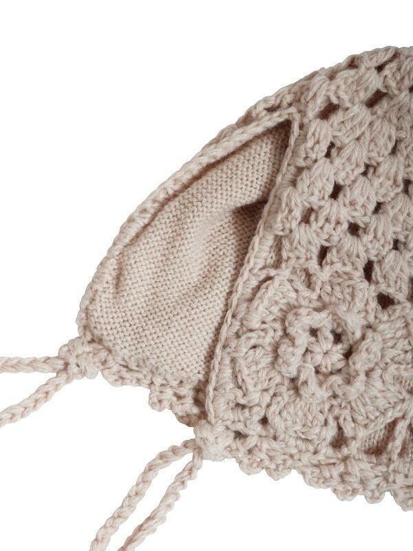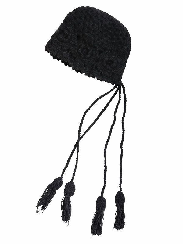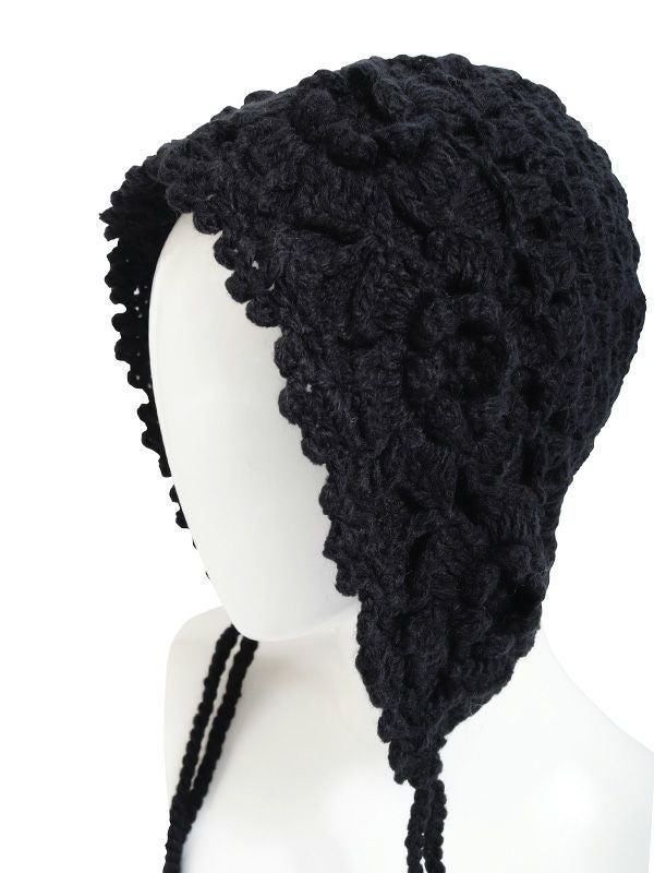 編み柄が可愛らしい紐付きのニットキャップ。防寒性を高めつつ、ストリート感のあるモダンな雰囲気を演出できます。コーデに取り入れるだけでトレンド感がグッと増すアイテムです。