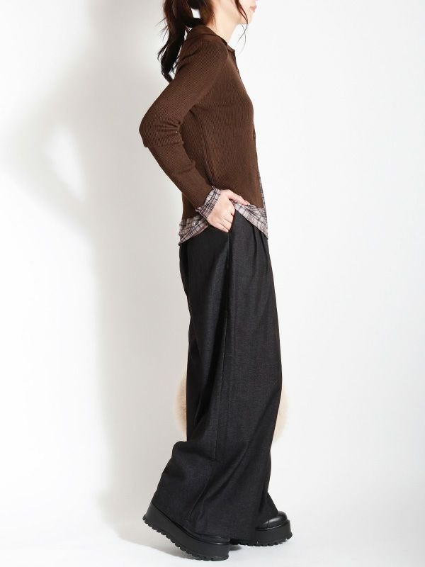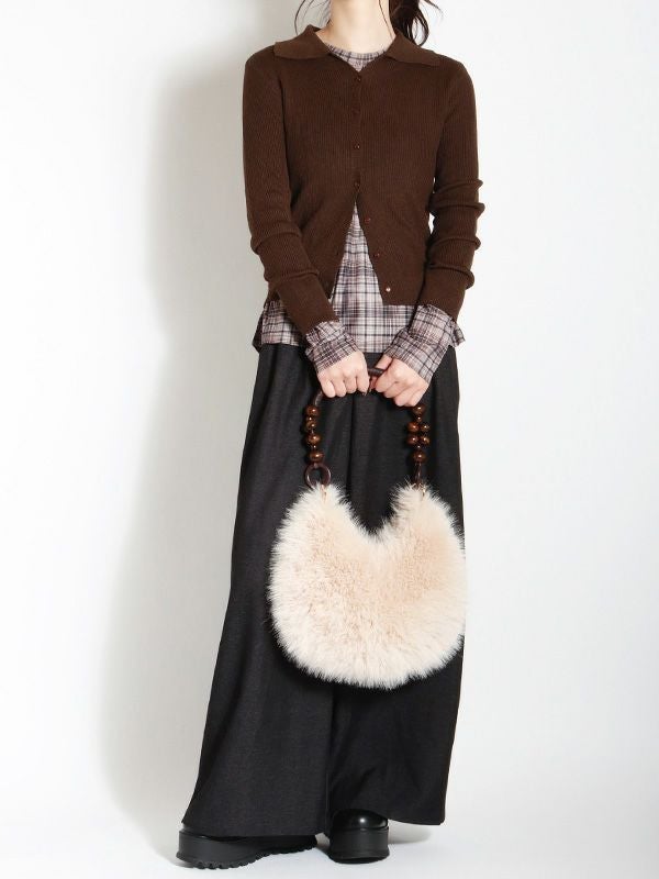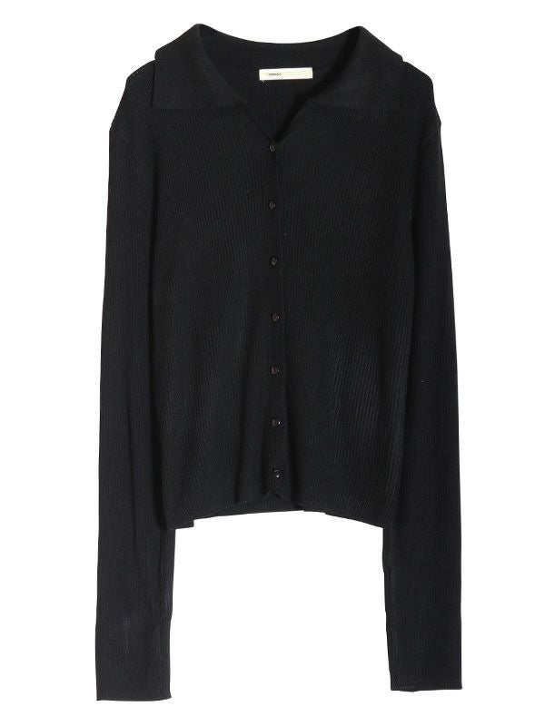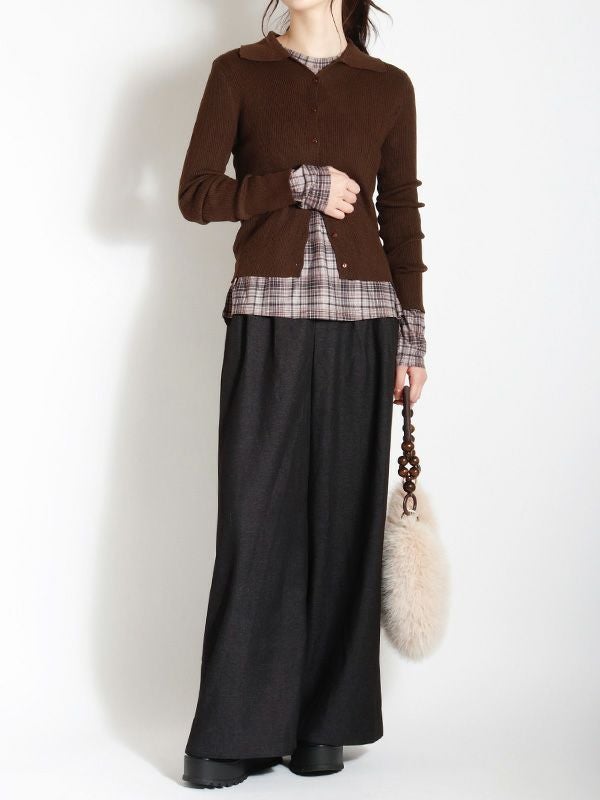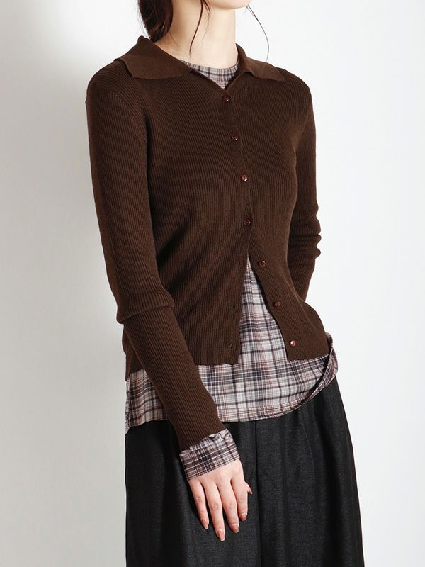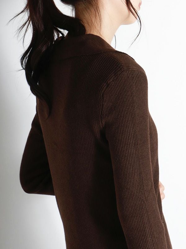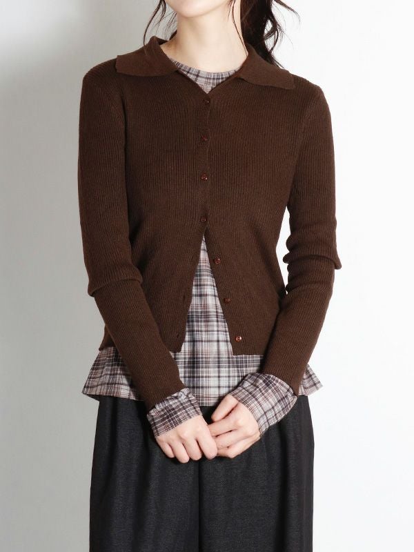 トレンドのポロ襟デザインを取り入れた、大人の女性にぴったりなリブカーディガン。 伸縮性のあるリブ編みが身体に心地よくフィットし、女性らしいコンパクトなシルエットを演出します。 トップスとしても、羽織りとしても使える、着回し力抜群の万能アイテムです。スラックスやデニムなどのカジュアルなワイドパンツと合わせれば、こなれ感のある大人カジュアルスタイルが完成します。ジャケットやジレのインナーとして、コーディネートのアクセントにするのもおすすめ◎。