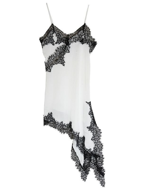 上品なレースをあしらった、キャミワンピース。華奢なストラップと繊細なレースが女性らしさを引き立てます。裾はアシンメトリーなデザインになっており、動くたびに軽やかな印象を与えます。Tシャツやニット、タートルネックなど、合わせるトップス次第で様々な表情を見せてくれます。デニムやスラックスを合わせて、カジュアルダウンしたコーディネートもおすすめ。レイヤードスタイルの幅を広げる1着です。