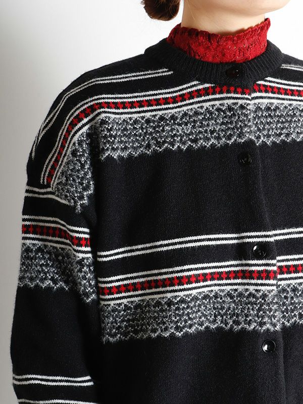 ノルディック調のジャーガードが印象的なニットカーディガン。スッキリとした印象のベーッシクなシルエットの1枚でコーディネートに存在感を与えるアイテム。ボタンを留めてクルーネックニットとしても、さらっと羽織りとしても使える着回し力の高いアイテムです。デニムやスカートと合わせるだけで、1枚でサマになるコーディネートが完成。スニーカーやキャップと合わせれば、よりカジュアルな印象に。スラックスやテーパードパンツと合わせれば、上品な大人のスタイルになります。