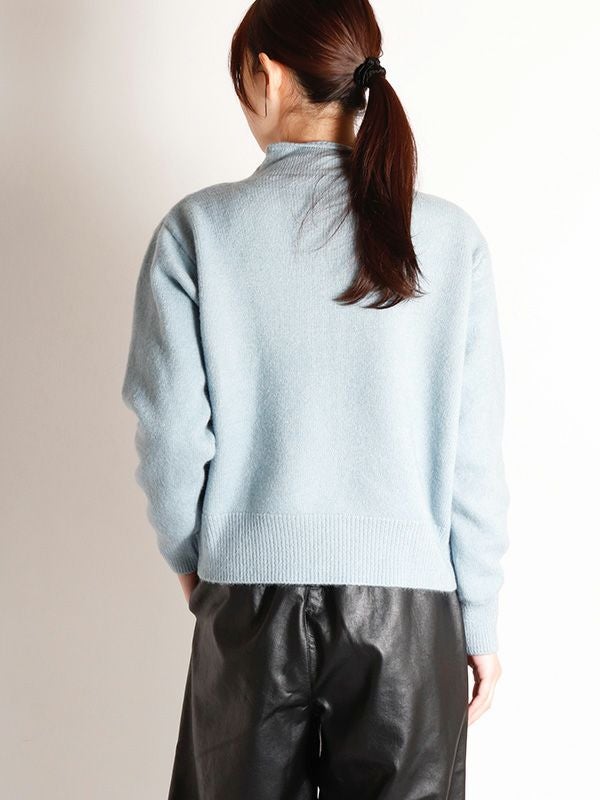 小粒なスクエア型の14個あしらわれたボタンディティールが特徴のカーディガン。コンパクトなハイネックでクラシックな表情とモダンなエッセンスが融合したデザインが印象的な1枚です。カーディガンとしてはもちろんボタンディティールを活かしたハイネックニットとして着ると、スタイリングがグッとオシャレになります。腰ほどの着丈で、ワイドシルエットボトムやワンピースとも好相性。パンツスタイルからスカート、ワンピースまで、幅広いアイテムにマッチし着回し力も抜群です。