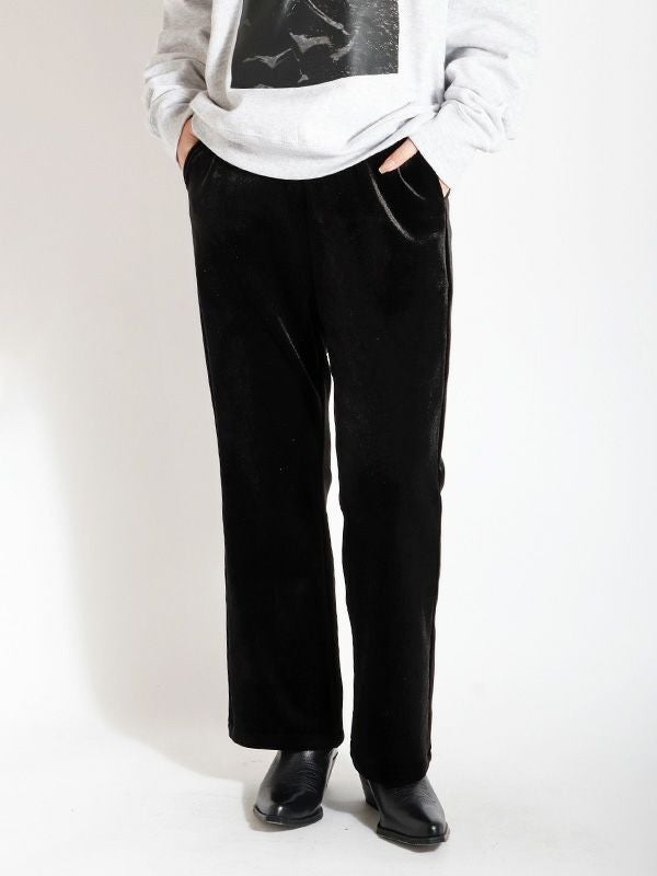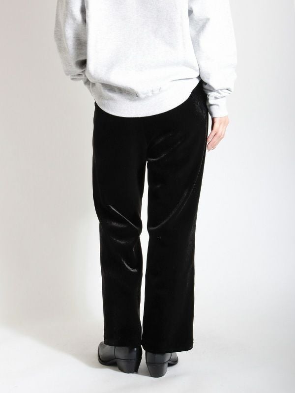季節感のあるベロアセミフレアパンツ。ベロア素材が上品な光沢感を演出。 ウエストはフルゴム仕様でリラックス感がありながらも、キレイ見えも兼ね備えたデザインです。 オーバーサイズのニットやスウェットと合わせてカジュアルなスタイリングやワンピースの下にレイヤードして大人っぽく着るのも◎ デイリーにもお出掛けにも対応できる一枚です。