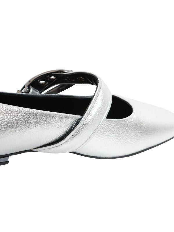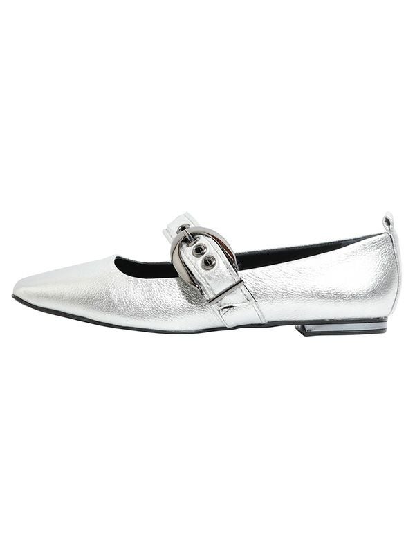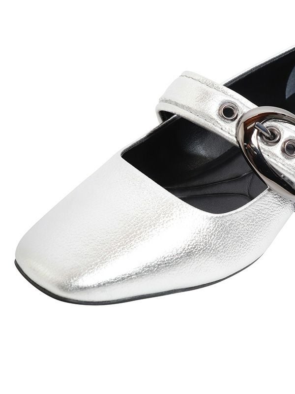 足元をすっきりと見せるワンストラップのメリージェーンパンプス。存在感のあるバックルで、甘くなりすぎない大人フェミニンな雰囲気に仕上げました。上品な光沢を放つ定番のBLACKに加え、今季のトレンドを意識したSILVERの2色展開。ベーシックからトレンドまで、幅広いスタイルに合わせやすいパンプスです。フェミニンなスカートやワンピースにはもちろん、オフィススタイルにも品格をプラス。チュールソックスやリブタイツと合わせれば、足元のレイヤードスタイルが楽しめます。また、あえてデニムと合わせてカジュアルダウンするのもおすすめ。