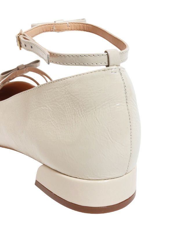 クラシカルな魅力を放つパンプスが入荷。2.5㎝ヒールのメリージェーンスタイルに、アッパー部分の3連リボンとアンクルストラップのリボンがあしらわれたデザインがなんとも可愛いアイテム。フラットなデザインなので足に負担がかかりにくく、デイリーに活躍します。キレイめからオフィススタイルまで大活躍。あえてデニムパンツと合わせたカジュアルスタイルにもマッチします。素足ではもちろん、ソックスと合わせたカジュアル使いにも相性抜群です。