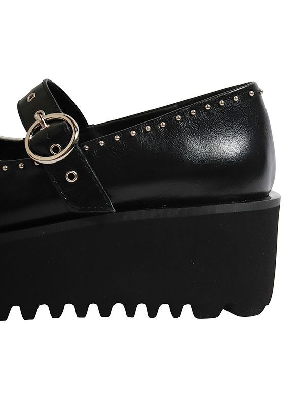 「ALL BLACK/オール・ブラック」らしいスタッズ装飾とストラップデザインが特徴的なレザーシューズ。6.5cmのボリュームソールがトレンド感をさらに表現してくれます。履きやすさとファッション性を兼ね備え、カジュアルな日でも格上げしてくれる重厚感のある1足。高級感がありカジュアルすぎず、幅広いシーンで活躍。軽く足あたりも良い、快適でストレスフリーな履き心地ながら、本革の風合いがクラス感を添える1足です。