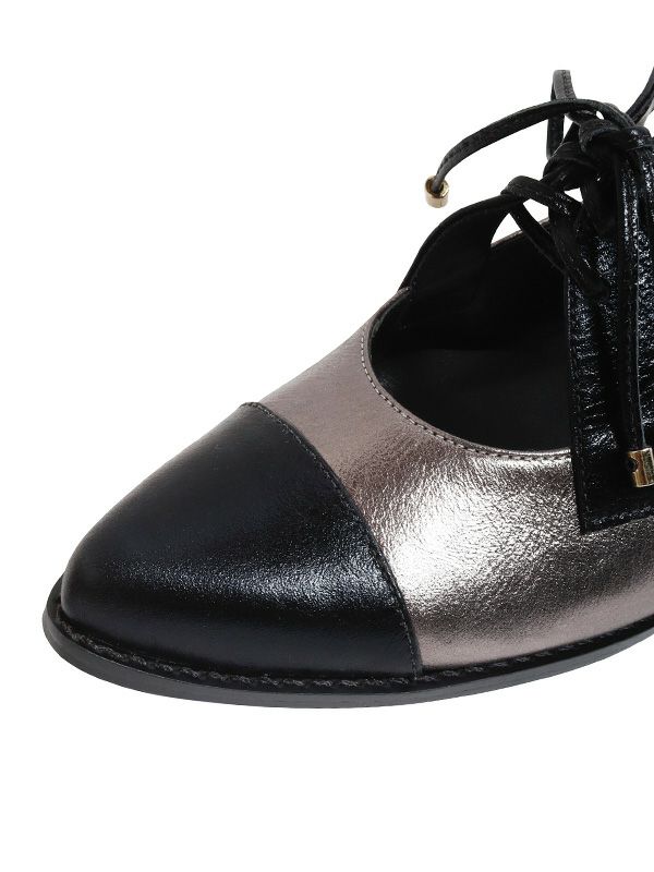 光沢のあるレザーが上品で、ラグジュアリーな雰囲気が魅力のドレスシューズ。クラシックなパンプスシューズをベースに、曲線的なトップラインのストラップでモダンなアクセントを加えた大人顔のデザインです。デイリー使いにはもちろん、フォーマルやドレススタイルにも様々なシーンで活躍します。ソックスやカラータイツとの組み合わせも楽しめ、コーディネートの幅が広がる1足です。