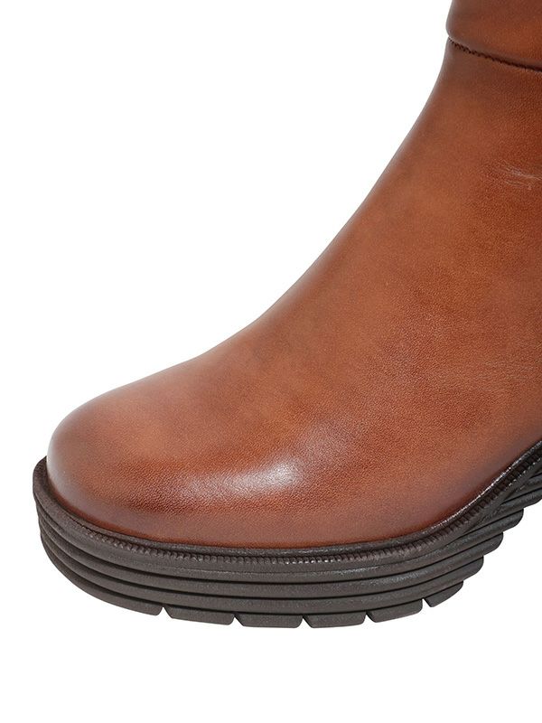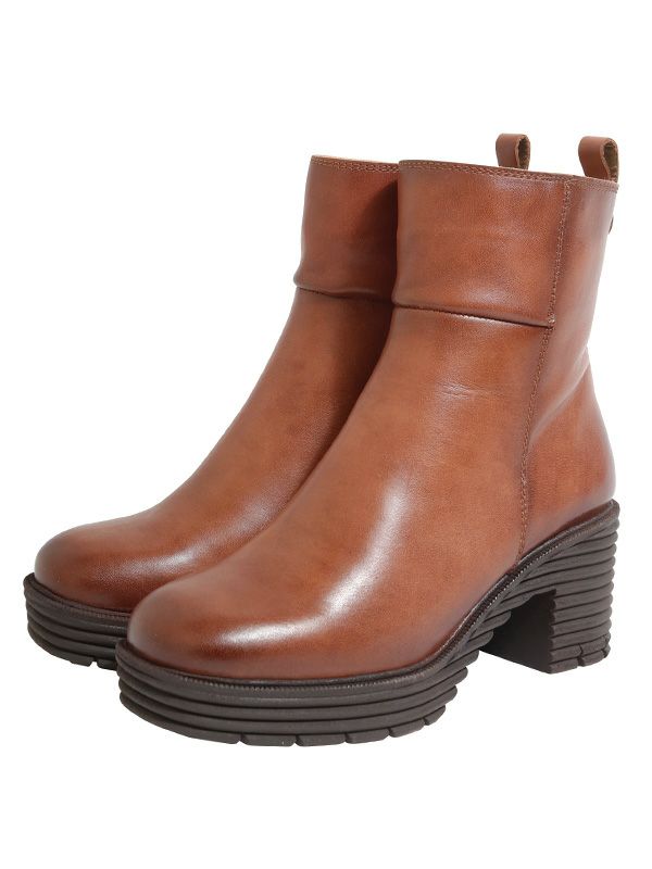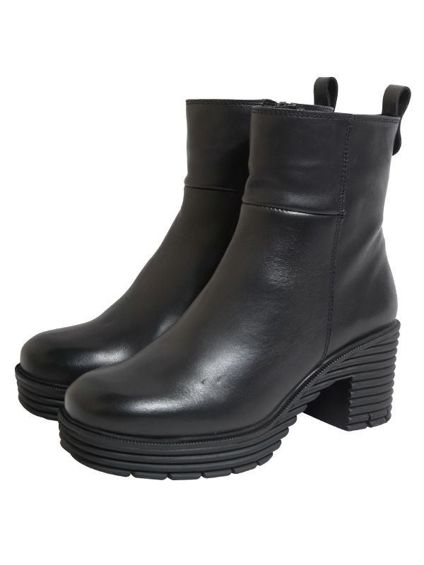 履くだけでトレンドムード漂うボリュームソールブーツ。カウレザー素材が端正でキレイめな雰囲気をプラスしてくれ、とりいれやすいデザイン。サイドジップで着脱しやすいのも◎。すっきりした筒周りで足が細見えするのも嬉しいポイントです。7cmチャンキーヒールには、やや厚めの前ソールがあり、緩やかな傾斜が履きやすくて◎。ソール部分はしっかりとした凹凸が施されておりデザイン性とグリップ性も備えています。内側のあたたかな裏地がこれからの季節にぴったりな1足です。