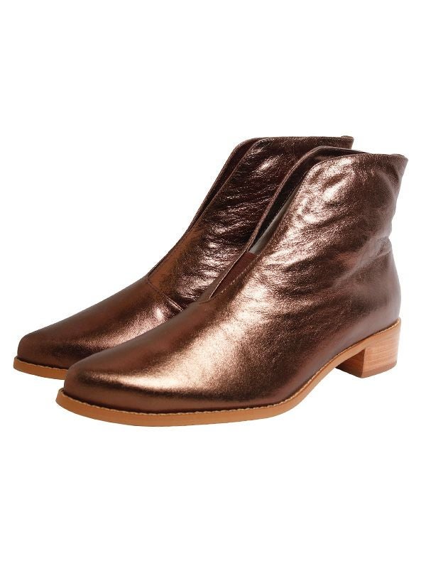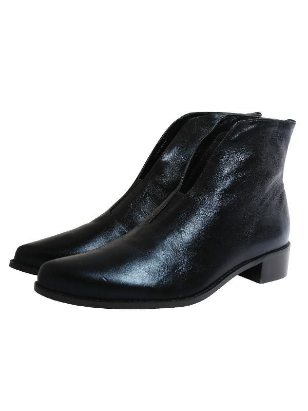 アッパーにセンタースリットを施したアイコニックなデザインが特徴。上質な光沢を放つメタリック加工レザー素材を採用することでモードな印象をプラスしました。深めのスリットデザインが足もとの抜け感を出してくれるので、きれいめやモードスタイルはもちろん、デニムで大人なカジュアルなコーデにも◎。スリットから覗かせたタイツやソックスとの合わせもお楽しみいただけます。