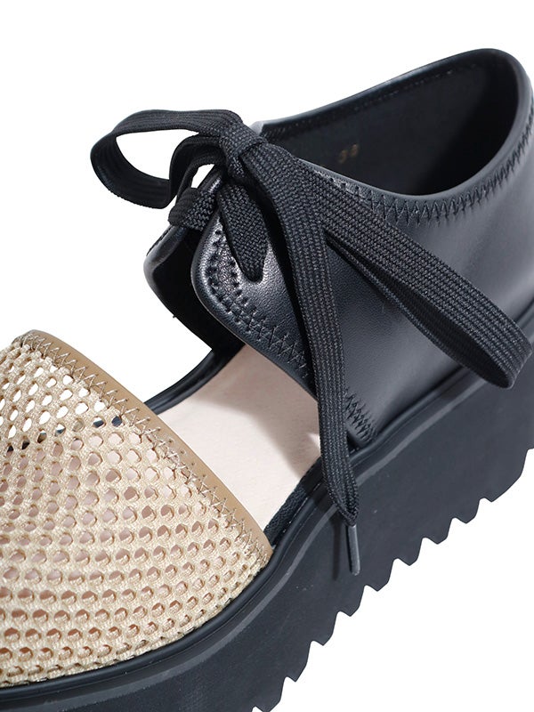 大人気のデザインが新色を伴って今年も入荷しました!トレンドのメッシュ素材を使用したドレスシューズ。上品なフォルムに、シューレースのアクセントが可愛らしいデザインです。アッパーは薄手で軽いメッシュ生地、柔らかいソールで快適な履き心地。春先はソックスや薄手のタイツと合わせて、夏時期には透けを活かして涼しげに楽しめるひと品です。履き心地とトレンド感を兼ね備えた春夏のコーディネートに合わせやすく、デイリーユースにおすすめのシューズです。