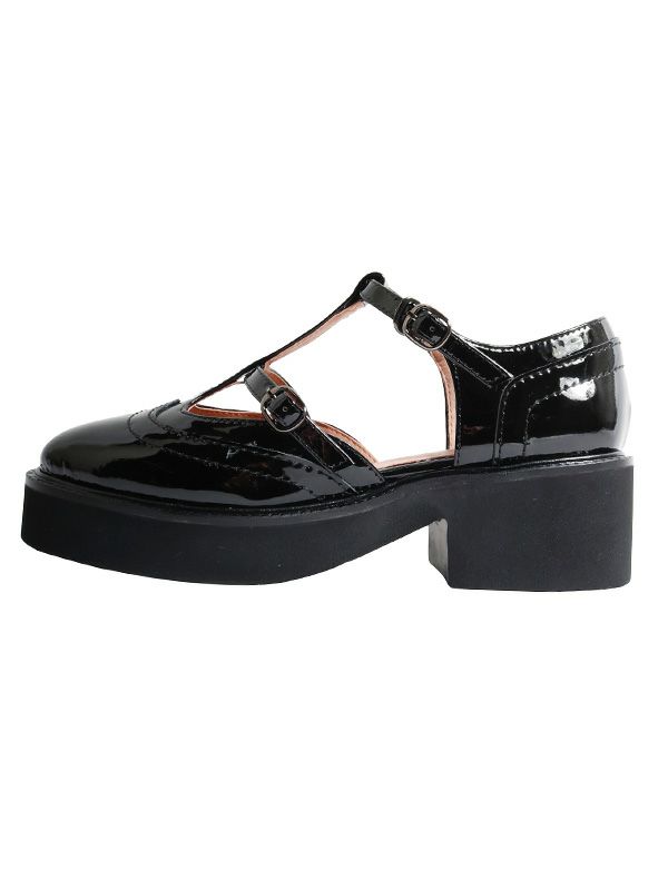 エナメル調のツヤ素材が特徴のTストラップパンプスは、足元をエレガントかつ華やかに彩ってくれる1足。ダブルのストラップディテールがアクセントになり、足元を美しく見せながら、しっかりとホールドしてくれます。きれいめなスカートやワンピースと合わせてフェミニンなスタイルに。スラックスやテーパードパンツと合わせれば、オフィスにも対応できる上品な印象を与えます。カジュアルなデニムスタイルにプラスして、足元に抜け感や上品さを加えるミックススタイルもおすすめです。