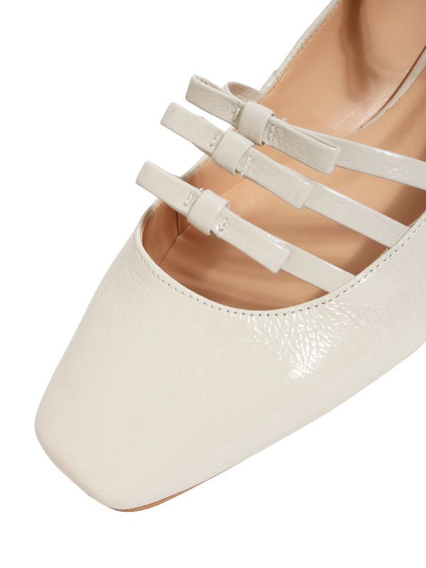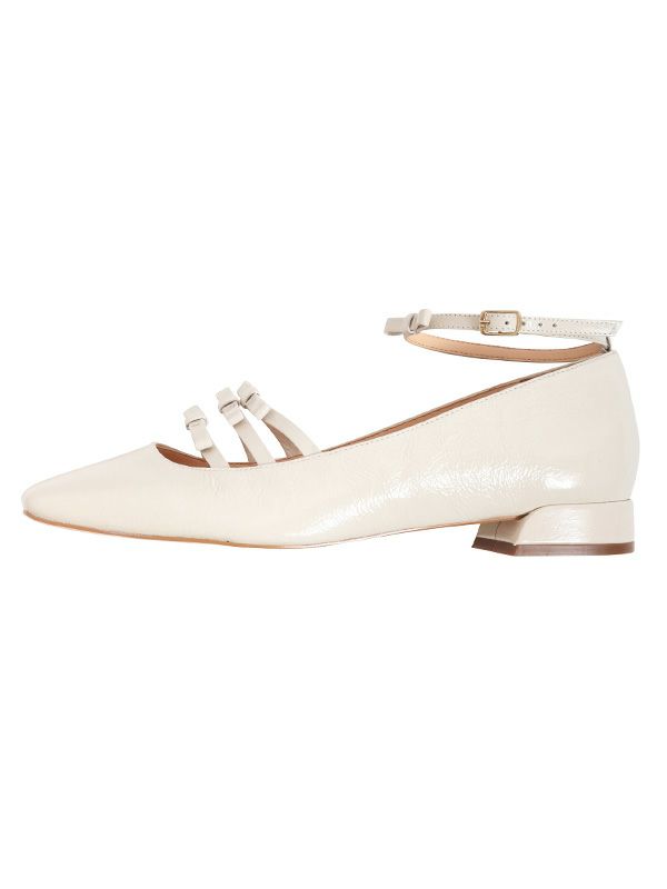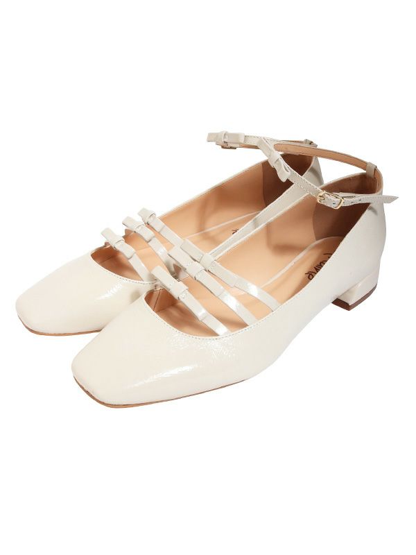 クラシカルな魅力を放つパンプスが入荷。2.5㎝ヒールのメリージェーンスタイルに、アッパー部分の3連リボンとアンクルストラップのリボンがあしらわれたデザインがなんとも可愛いアイテム。フラットなデザインなので足に負担がかかりにくく、デイリーに活躍します。キレイめからオフィススタイルまで大活躍。あえてデニムパンツと合わせたカジュアルスタイルにもマッチします。素足ではもちろん、ソックスと合わせたカジュアル使いにも相性抜群です。